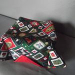 fond blanc dessus rouge motif sucre d orge , etoile doree, fond marron ,patwork etoile rouge, fond rouge motif pain d épice, maison, fond rouge motif sapin or, boule, houx, renne, fond vert motif houx