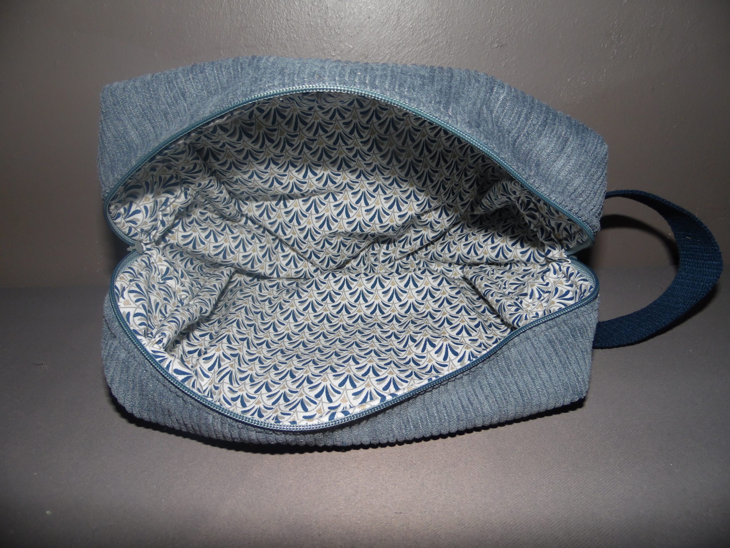 Trousse de toilette ayant une pochette zippé sur le devant.